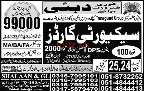 Latest SHALAAN & GL Overseas Employment Promoters Security Posts Dubai 2025