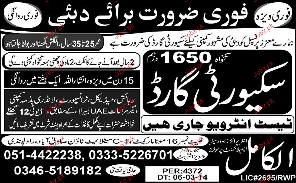 Security Guards are required in Dubai.