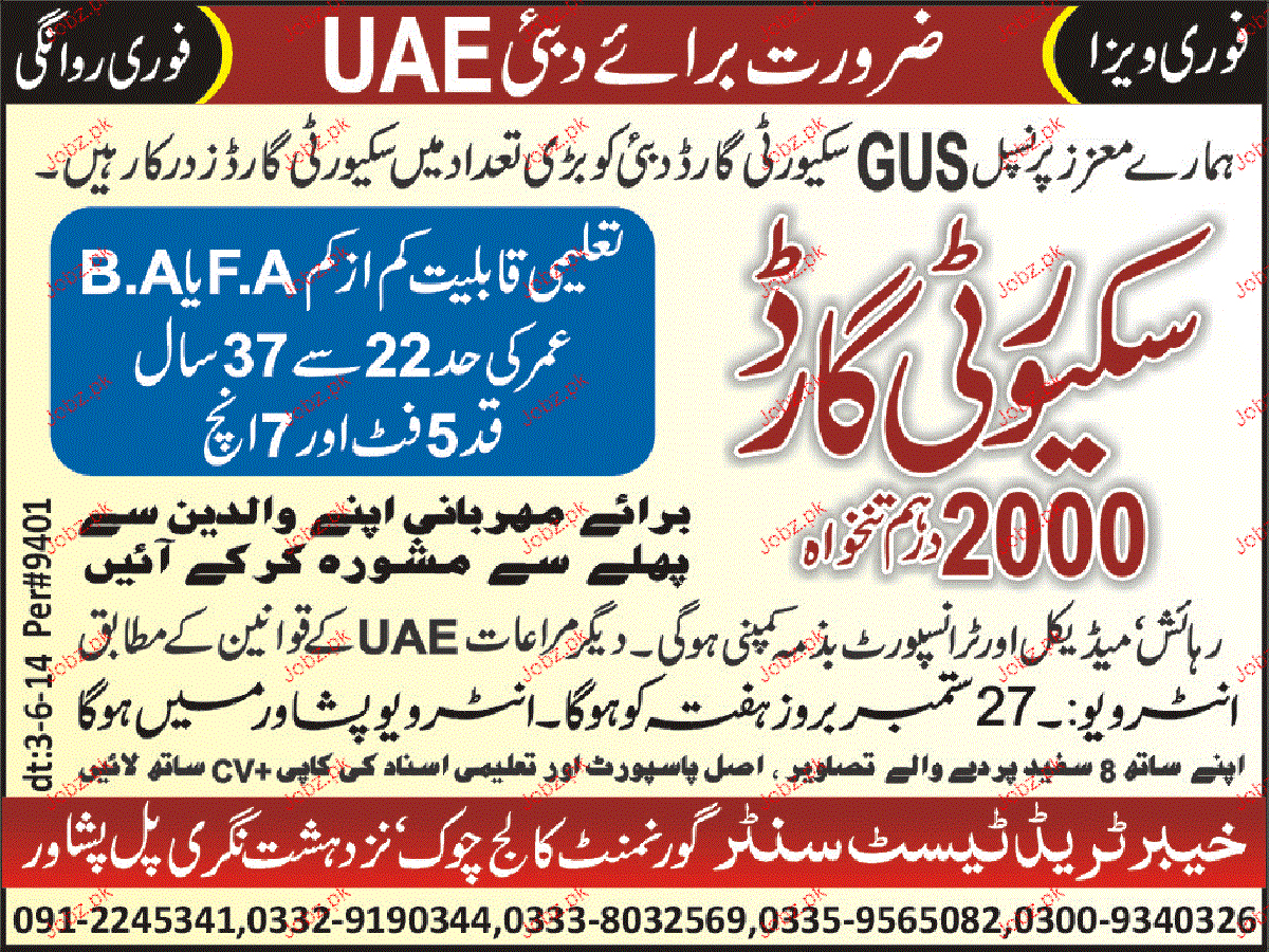 Security Guards are required in Dubai.