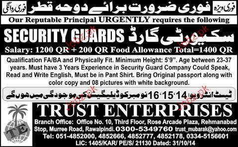 Security Guards are required in Qatar.