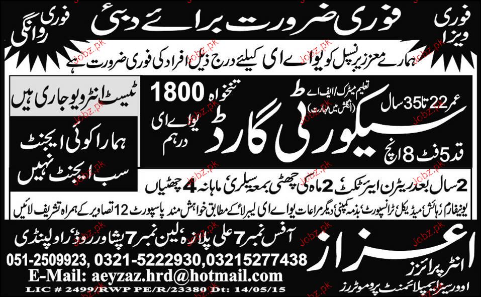 Security Guards are required in Dubai.