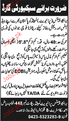 Latest Private Company Security Posts Lahore 2025
