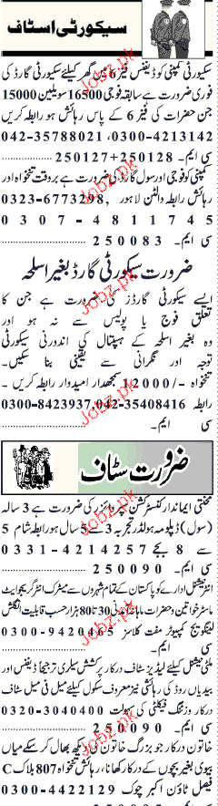 Latest Private Company Security Posts Lahore 2025