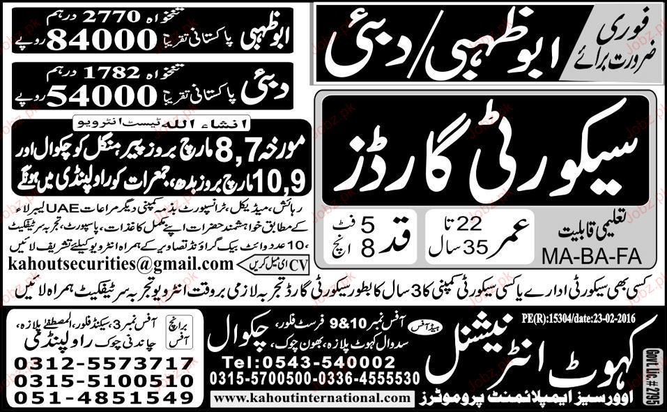 Security Guards are required in Dubai.