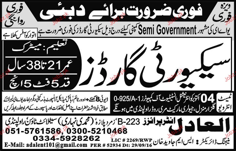 Security Guards are required in Dubai.