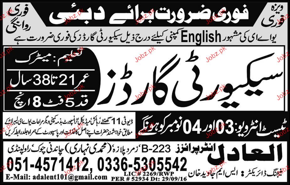 Security Guards are required in Dubai.