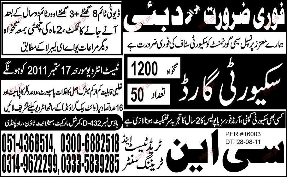 Security Guards are required in Dubai