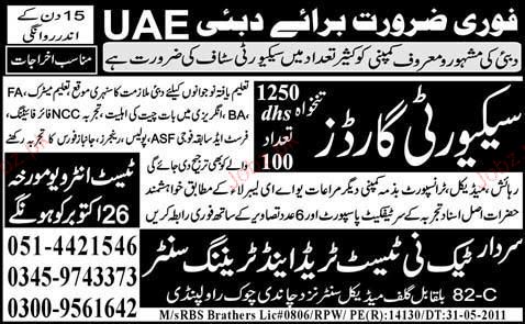 Security Guards are required in Dubai