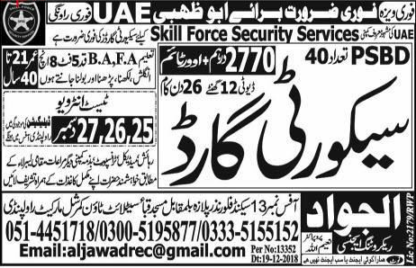 Latest Al Jawad Recruiting Agency Security Posts Abu Dhabi 2025