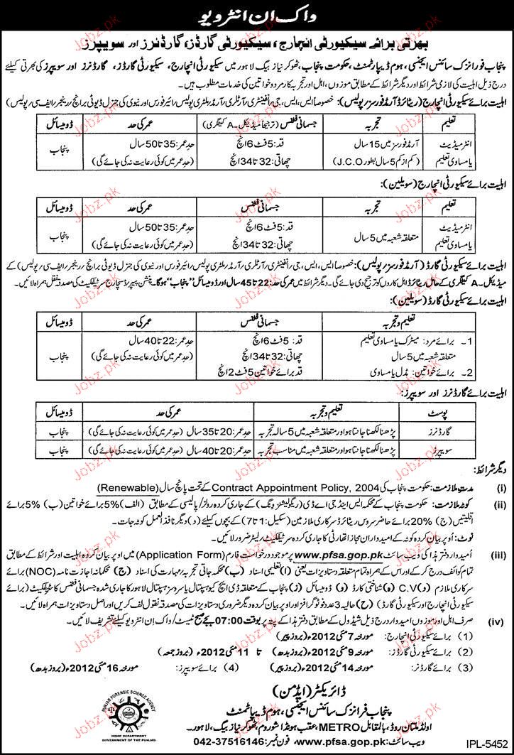 Latest Government Department Security Posts Lahore 2025