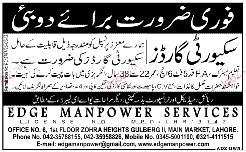 Security Guards are required in Dubai