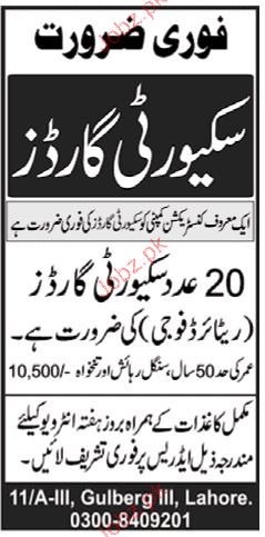 Latest Private Company Security Posts Lahore 2025