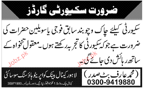 Security Guards are required in Lahore Cannal Bank Cooperative Housing Society in Lahore