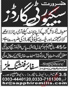Security Guards are required in Sphier Finishing Mills in Lahore