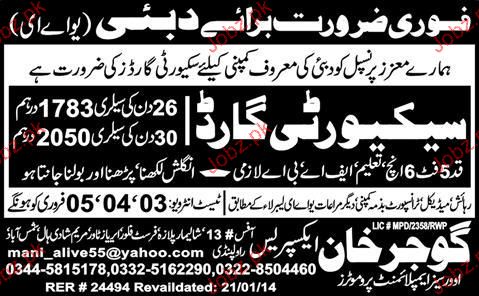 Security Guards are required in Dubai
