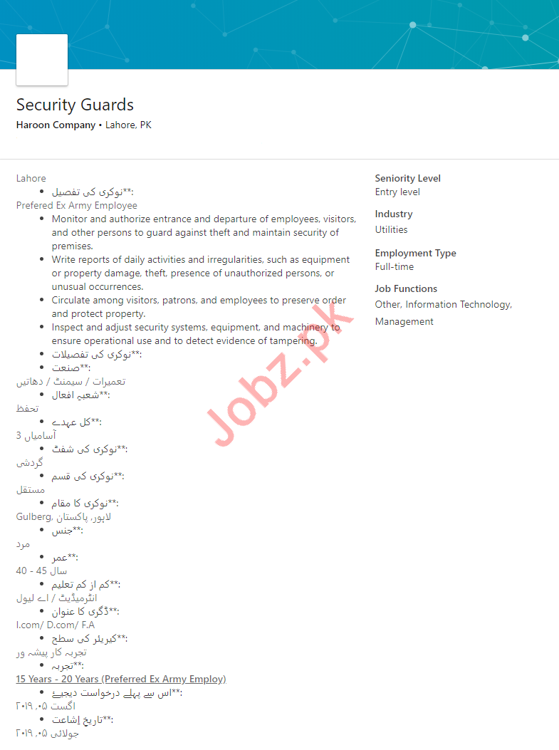 Apply as per details in job advertisement. Login to view further details of how to apply via https://www.jobz.pk online.