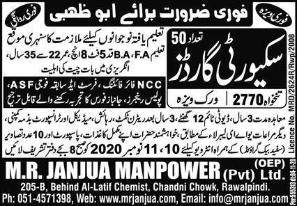 Latest MR Janjua Manpower Pvt Limited Security Posts UAE 2025