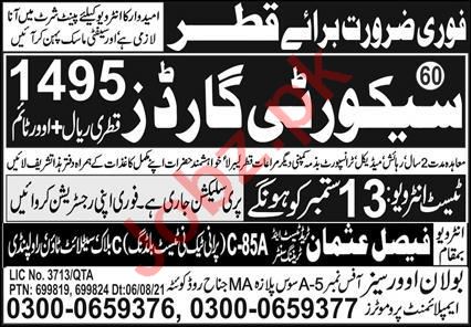 Latest Faisal Usman Trade Test & Training Center Security Posts Qatar 2025