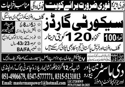 The Master Manpower Bureau is looking for candidates for following posts as per job advertisement published in daily Express Newspaper of July 3, 2025 for location Kuwait, kuwait Kuwait: