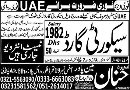 Hanan Manpower is looking for candidates for following posts as per job advertisement published in daily Express Newspaper of October 11, 2023 for location Abu Dhabi, sharjah UAE: