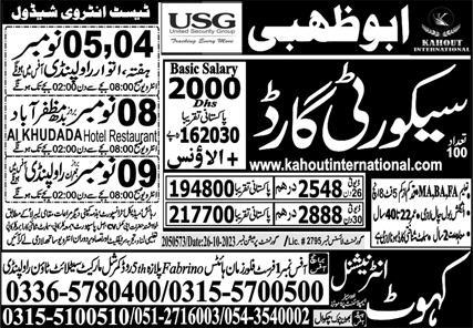 Kahout International Oversea Employment is looking for candidates for following posts as per job advertisement published in daily Express Newspaper of October 31, 2023 for location Abu Dhabi, sharjah UAE: