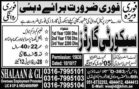Latest SHALAAN & GL Overseas Employment Promoters Security Posts Dubai 2025