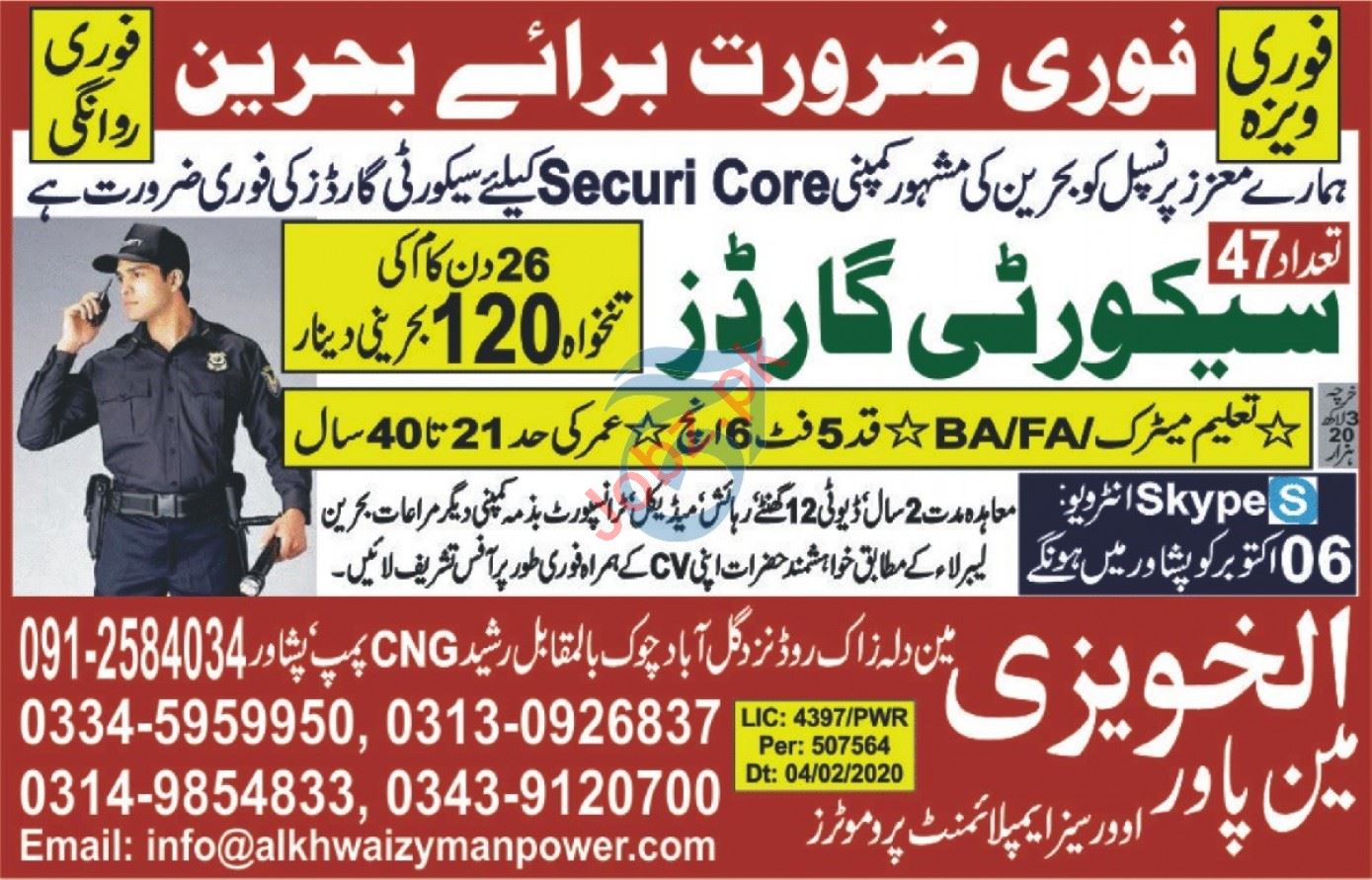 Latest Al Khwaizy Overseas Employment Promoters Security Posts Bahrain 2025