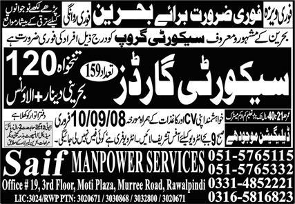 Latest Saif Manpower Services Security Posts Bahrain 2025
