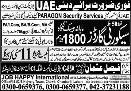 Vacant posts including security guard are announced in Job Happy International Overeseas Manpower Employment Promoters Dubai, dubai Dubai as per 10 May 2022 advertisement in daily Express Newspaper. Educational qualifications required Matric, Intermediate and Bachelor etc.