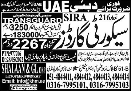 SHALAAN & GL Overseas Employment Promoters invites applications for job positions advertised in daily Express dated 25 June 2022 for following vacancies in Dubai, dubai Dubai.
