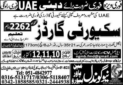 New Gondal Manpower Bureau invites applications for job positions advertised in daily Express dated 5 October 2022 for following vacancies in Dubai, sharjah Dubai.