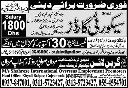 Green Line Human Resource Manpower latest Overseas Security jobs and others can be applied till 30 October 2022 or as per closing date in newspaper ad. Read complete ad online to know how to apply on latest Green Line Human Resource Manpower job opportunities. Salary varies from 110000. Extra hours work allowed to earn more. Free medical, accommodation and transport may be available.