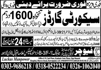 Vacant posts including security guard are announced in Future Trade Test & Technical Training Center Dubai, sharjah Dubai as per 21 June 2023 advertisement in daily Express Newspaper. Educational qualifications required Matric and Intermediate etc.