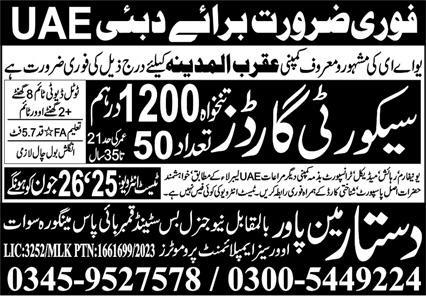 Dastar Manpower Overseas Employment Promoters is looking for candidates for following posts as per job advertisement published in daily Express Newspaper of June 22, 2023 for location Dubai, abu dhabi Dubai: