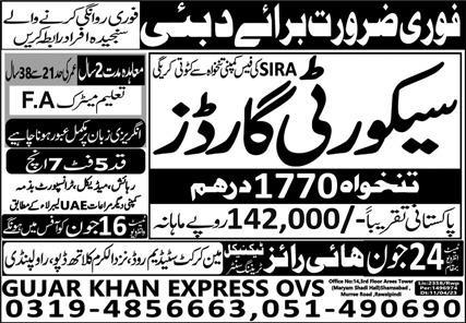 High Rise Technical Training Center jobs advertisement dated about 23 June 2023 in daily Express Newspaper invites application for the vacant post of security guard in Dubai, sharjah Dubai. Preferred Education is Matric and Intermediate etc.