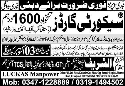 Luckas Manpower is looking for candidates for following posts as per job advertisement published in daily Express Newspaper of September 29, 2023 for location Dubai, abu dhabi Dubai: