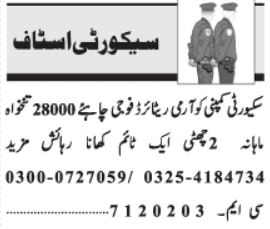 Security Company jobs advertisement dated about 19 July 2022 in daily Jang Newspaper invites application for the vacant post of security guard and security staff in Lahore, lahore Punjab Pakistan. Candidates with Middle and Matric etc. educational background will be preferred.