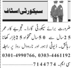 Latest Security Company Security Posts Lahore 2025