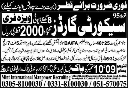 Pak Techni Test Center jobs advertisement dated about 9 September 2022 in daily Express Newspaper invites application for the vacant post of security guard in Qatar, qatar Qatar. Preferred Education is Intermediate and Bachelor etc.
