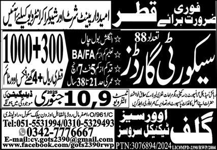 Gulf Overseas Technical Services Doha, doha Qatar invites applications from eligible candidates for the post of security guard as per advertisement of January 9, 2025 published in daily Express Newspaper. Educational qualifications required Bachelor, BA and Intermediate etc.
