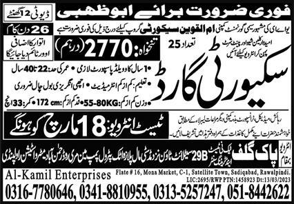 Pak Gulf Tec Ni Test & Training Center jobs advertisement dated about 17 March 2023 in daily Express Newspaper invites application for the vacant post of security guard in Abu Dhabi, sharjah UAE. Preferred Education is Intermediate etc.