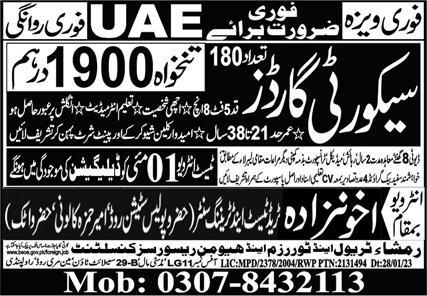 Vacant posts including security guard are announced in Akhunzada Trade test & Training Center Abu Dhabi, sharjah UAE as per 30 April 2024 advertisement in daily Express Newspaper. Persons with Intermediate etc. education can apply.