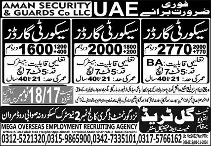Apply at Gul Trade Test & Technical Center latest Overseas jobs in Security and departments before closing date which is around November 18, 2024 or as per closing date in newspaper ad. Read complete ad online to know how to apply on latest Gul Trade Test & Technical Center job opportunities. Salary varies from 206000. Earn more by overtime. During job accommodation, transport and medical facility is available.