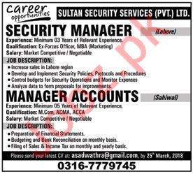 Security Manager & Manager Accounts Jobs 2018 in Lahore