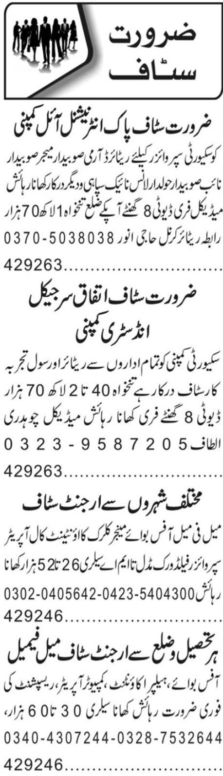 Private Company invites applications for job positions advertised in daily Roznama 92 News dated 24 February 2024 for following vacancies in Lahore, lahore Punjab Pakistan.