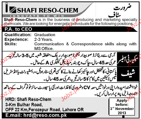 Apply as per details in job advertisement. Login to view further details of how to apply via https://www.jobz.pk online.