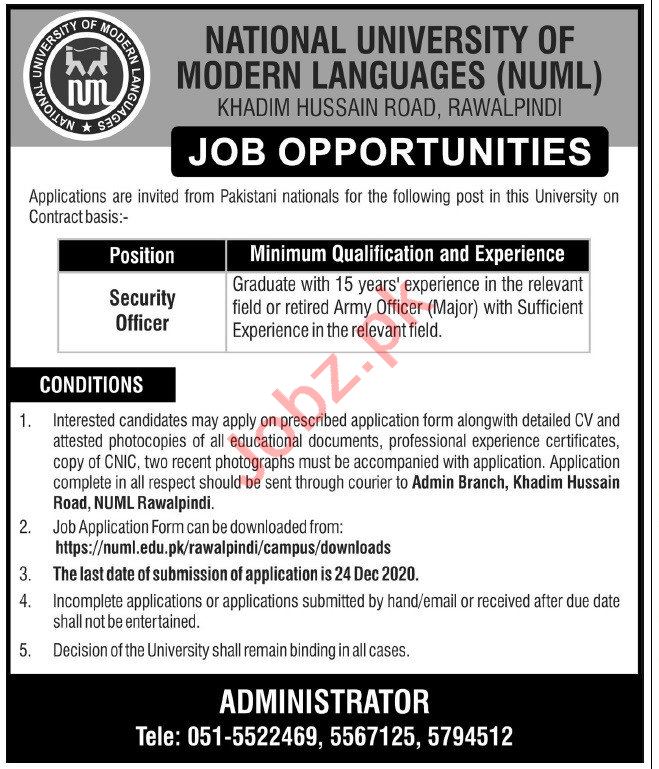 Latest National University of Modern Languages NUML Security Posts Islamabad 2025