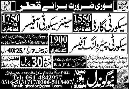 New Gondal Manpower Bureau invites applications for job positions advertised in daily Express dated 29 April 2022 for following vacancies in Qatar, qatar Qatar.