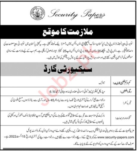 Security Papers Limited latest Private Security jobs and others can be applied till 15 August 2022 or as per closing date in newspaper ad. Read complete ad online to know how to apply on latest Security Papers Limited job opportunities.