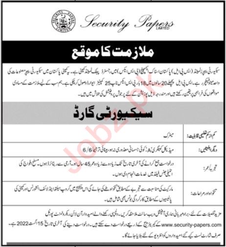 Security Papers Limited invites applications for job positions advertised in daily Jang dated 31 July 2022 for following vacancies in Quetta, quetta Balochistan Pakistan.
